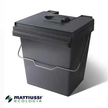 Lokket er festet, og felles opp under åpning. Håndtak i metall. Beholderen er utstyrt med en løftekant for plassering på avfallsbiler.